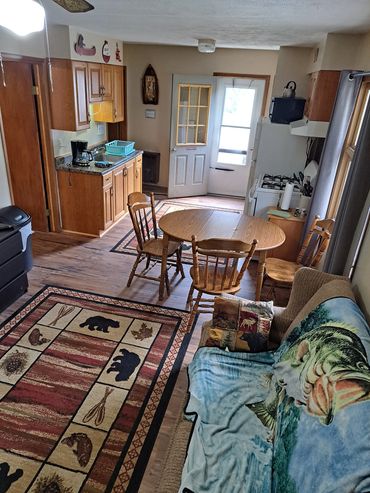 Choose from a variety of room types, each featuring modern amenities and comfortable furnishings. All cabins come with free Wi-Fi, cable TV Heat and AC in the summer. Our 2 Deluxe Cabins have a full sized kitchen. Onsite is Lindy Store an Army Navy Surplus/Live Bait and Tackle Store. Added in 2023 is a small Disc Golf course with 9 baskets All cabins have access to Mill Creek and the creek side fire ring. Prepare to relax and recharge in Gods Country.